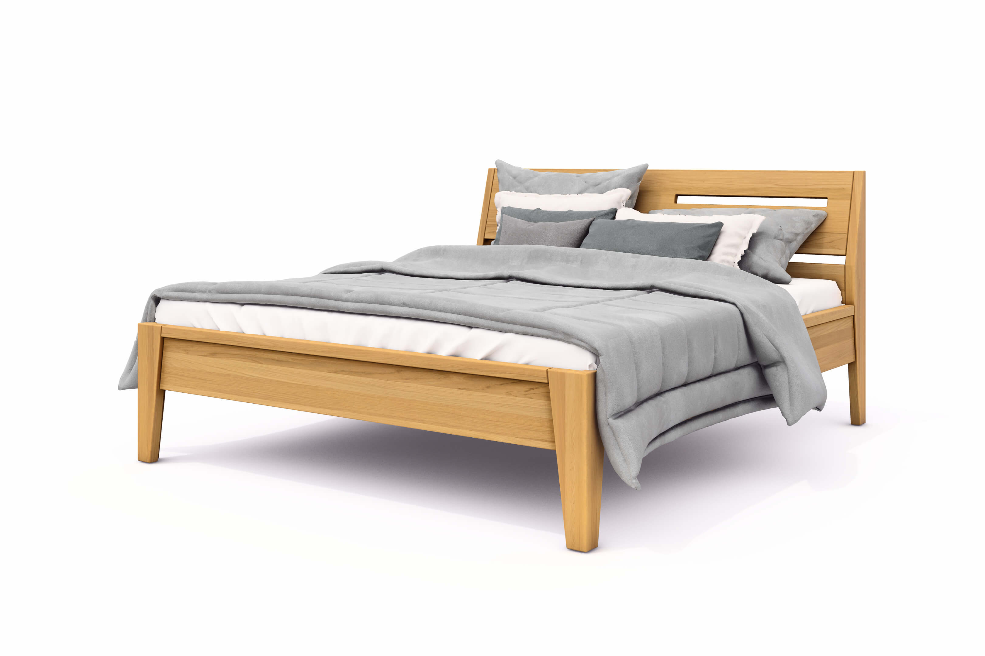 Postel RÁCHEL vyrábíme z masivního dubu a buku v síle materiálu 40 a 25 mm a v rozměrech 100 x 200 cm (jednolůžko) a 160/180/200 x 200 cm (manželské dvoulůžko).