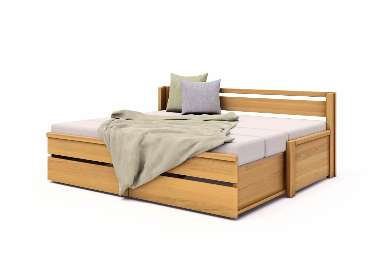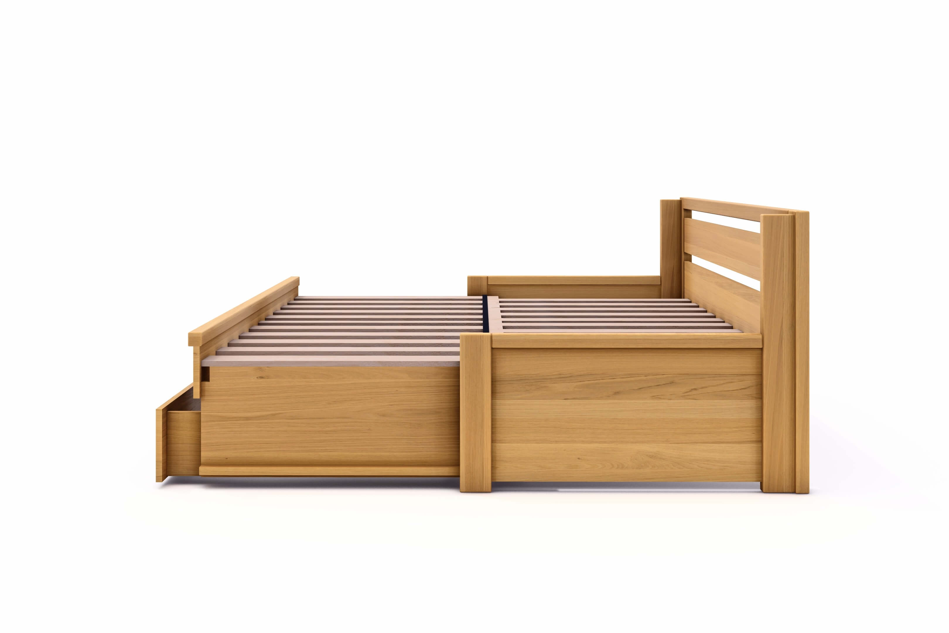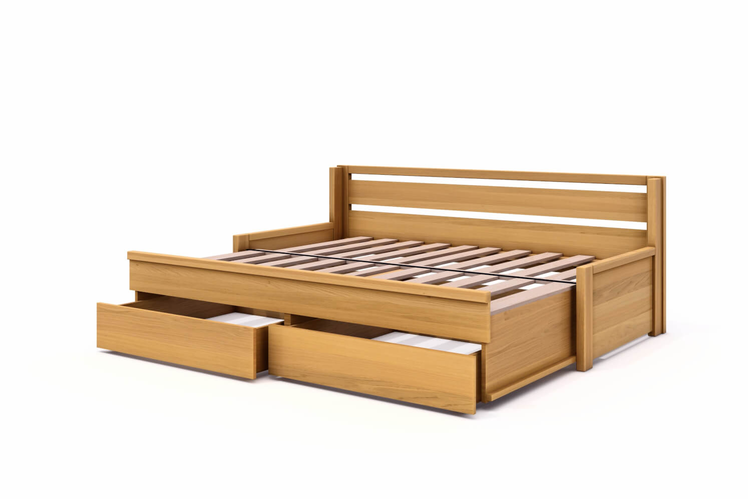 Rozkladaciu posteľ DIANA vyrábame z masívneho DUBU, DUBU RUSTIKU alebo BUKU v kombinácii s rozmerovo stabilnou latovkou, dyhovanou prírodnou dyhou.