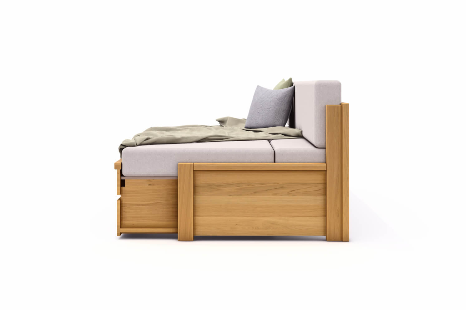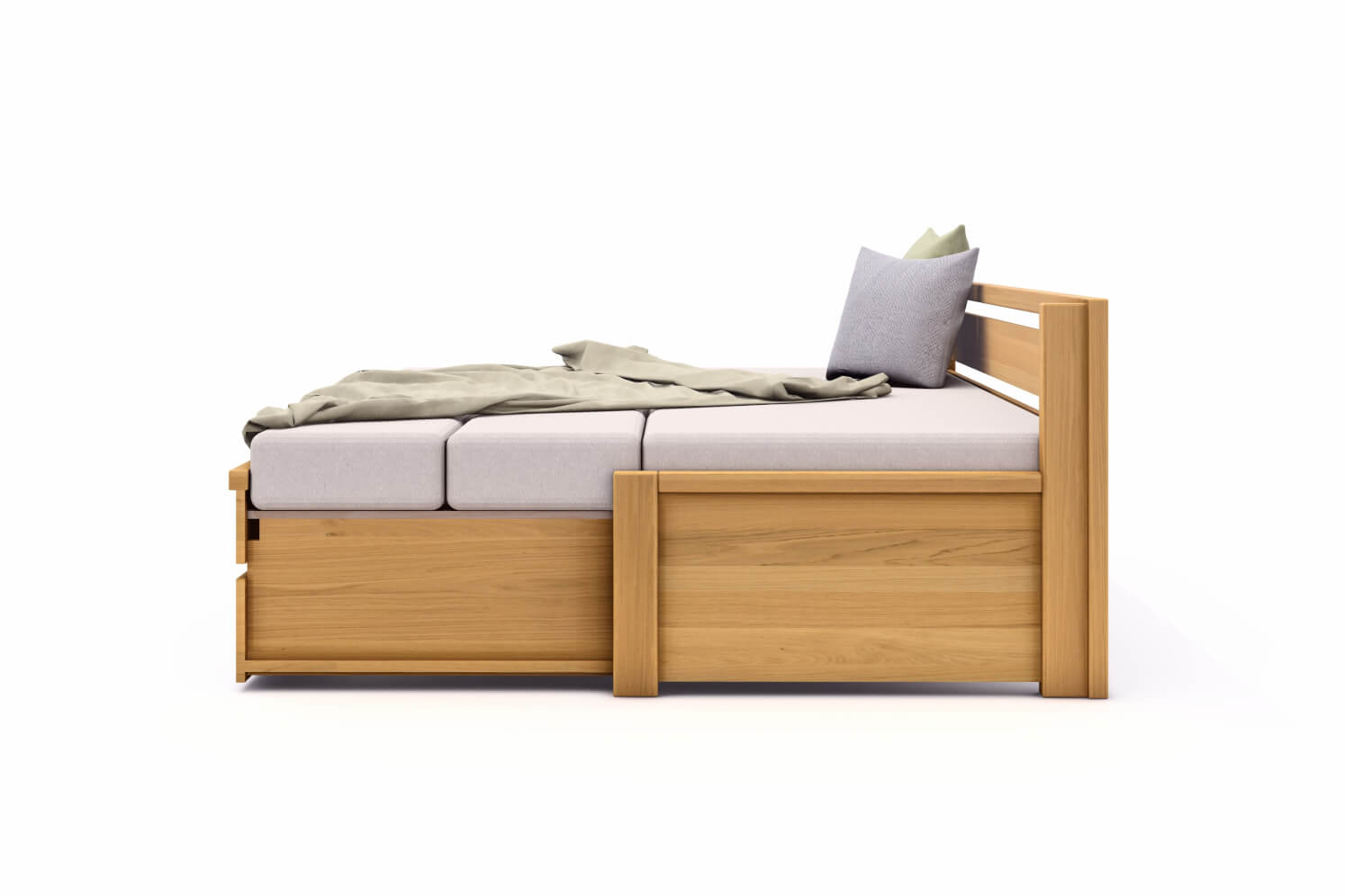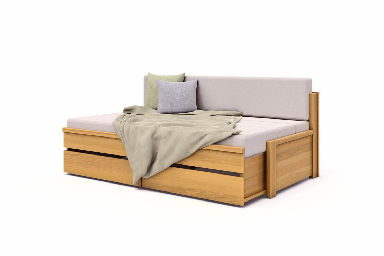 Rozkladaciu posteľ DIANA vyrábame z masívneho DUBU, DUBU RUSTIKU alebo BUKU v kombinácii s rozmerovo stabilnou latovkou, dyhovanou prírodnou dyhou.